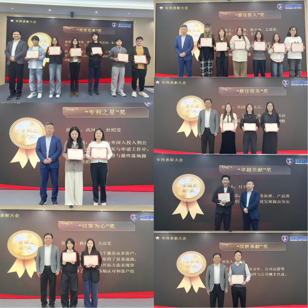 随后到表彰环节,公司对在不同领域做出突出贡献的员工进行了表彰,颁发了“攻坚克难”奖、“专利之星”奖、“以客为心”奖、“最佳新人”奖、“最佳服务”奖、“卓越贡献”奖、“深耕奉献”奖等多个奖项。获奖员工中,既有在技术突破、专利工作中勇攀高峰的科研骨干,也有在客户服务、市场开拓中的服务能手,还有快速成长的职场新人和默默奉献的服务保障人员,他们以实际行动诠释了细胞谷人攻坚克难、追求卓越的精神风貌,为全体员工树立了榜样。