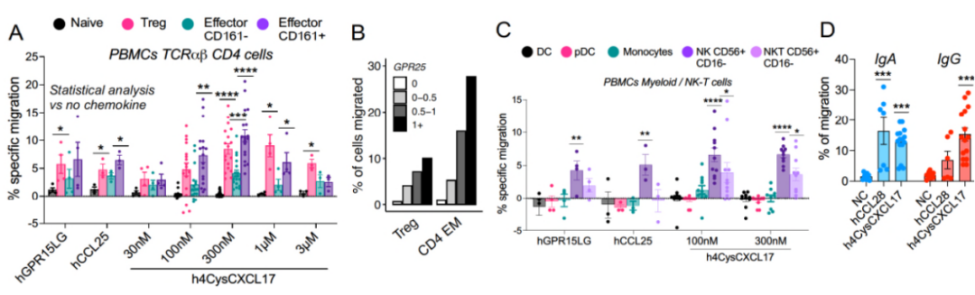 图4. 血液淋巴细胞对CXCL17的趋化作用验证