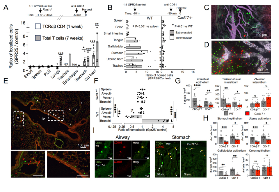 图6. 体内实验验证GPR25-CXCL17轴介导的淋巴细胞