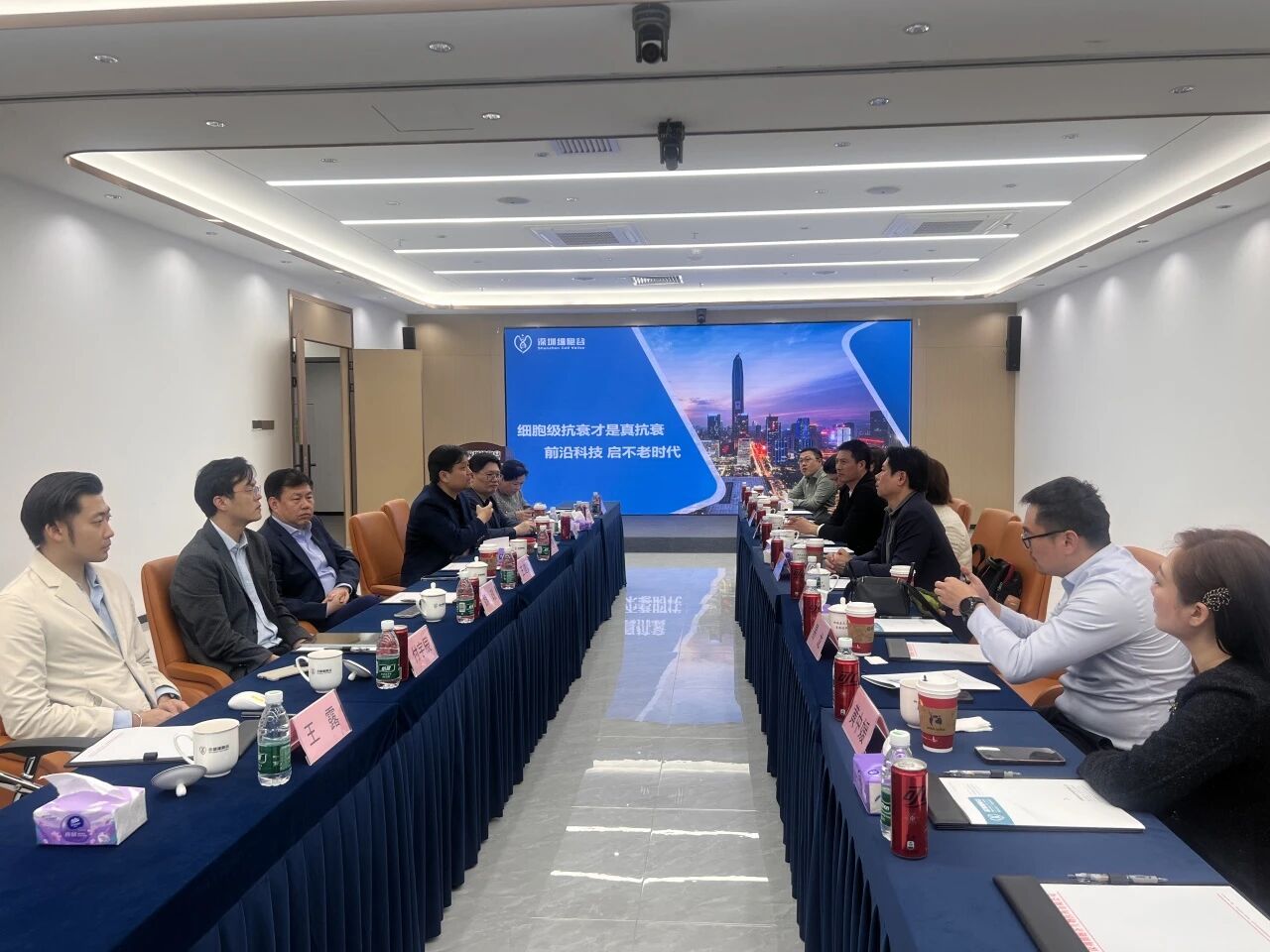 On February 15, a delegation including Tess Mak, Regional Director of AIA (a Fortune 500 company), Zeng Xiangbin from Dingrui Jinying Group, Wang Xiaodong, Executive Vice President of China Chuan Shang Association and founder of Jixiang Holding Group, and Yi Long, Secretary-General of the Hunan Chamber of Commerce in the United States and founder/CEO of Shuihan Capital, visited Shenzhen Cell Valley. Our company's Chairman Professor Shi Yuanyuan, Chief Scientist Professor Wang Jianxun, Deputy General Manager Tang Xiaomeng, Chief Medical Advisor Dr. David Jin, Director of General Affairs Office Wei Zheng, Assistant to the Chairman Fu Yuchen, Head of Marketing Department Sun Rui, and Director of General Office Wang Lu warmly received them.