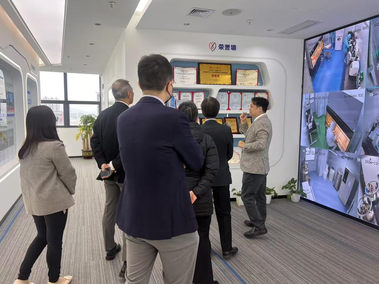On the morning of December 16, a delegation from the General Office of the Hospital Authority of the Hong Kong Special Administrative Region, including Dr. Xie Dazhi , Senior Administrative Manager of the Integrated Clinical Services Department, Ms.Ou Kunye, Manager of the Clinical Services Department, Ms.Yang Huimin, Senior Pharmacist of the Hospital Authority, Dr. Chen Shouren, Consultant in Hematology at Queen Mary Hospital, The University of Hong Kong, Dr. Wang Shaoming, Consultant in Hematology at Prince of Wales Hospital, The Chinese University of Hong Kong, and Dr. Liu Shimin, Consultant in Hematology at Queen Elizabeth Hospital, visited Shenzhen Cell Valley for an exchange visit. The delegation was warmly received by our company's Chairman Professor Shi Yuanyuan, Chief Scientist Professor Wang Jianxun, Business Director Wei Zheng, Chairman's Assistant Fu Yuchen, Marketing Director Sun Rui, and Director of the General Office Wang Lu.