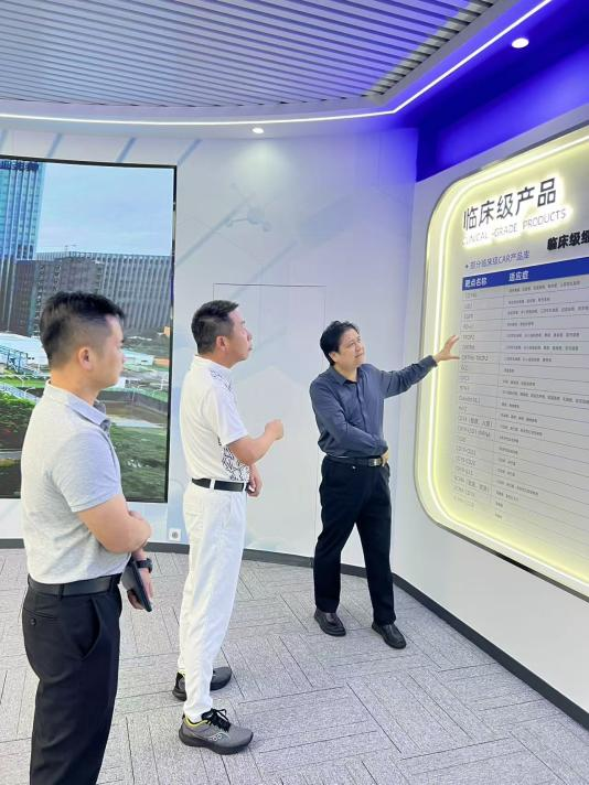 在深港细胞谷创始人史渊源教授陪同下,来访一行参观了细胞谷智慧展厅、多地联动实验室及GMP工业化生产平台,深入了解其在细胞与基因治疗前沿技术、关键核心技术攻关以及深港资源整合实践方面的最新进展。乐城管理局领导对细胞谷在创新药物研发、临床转化与国际合作方面的探索成果给予高度评价,并围绕乐城政策优势与细胞谷技术优势的协同机制、产品质控体系建设及成果转化路径等话题展开深入交流。