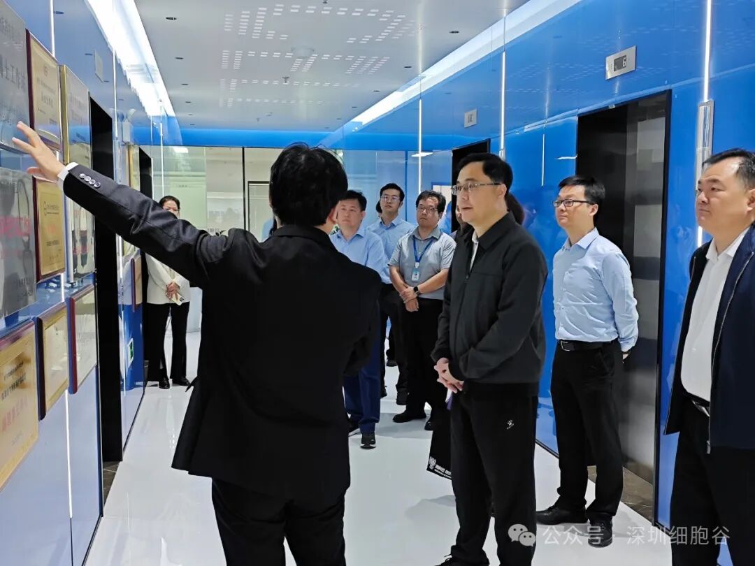 在史渊源的引介下,来访领导参观了深圳细胞谷智慧展厅,深入了解了深圳细胞谷的发展历程、建设现状、战略规划及核心产品。随后,领导一行实地考察了深圳细胞谷GMP生产车间。
