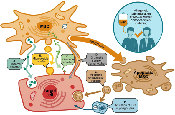 间充质干细胞(Mesenchymal Stem Cell, MSCs)是具有自我更新能力和来源于中胚层的多能成体干细胞,可分化成多种细胞类型,如软骨细胞、脂肪细胞、成骨细胞和其他细胞类型,因此被用于许多类型的研究,已在多种疾病的多项临床试验研究(CTSs)中被证明是安全有效的。与其他干细胞相比,MSC在具有多项分化潜能的同时,几乎没有成瘤性和致瘤性,同时其还不存在伦理问题。