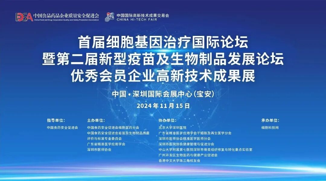 11月14—16日,由中国食品药品企业质量安全促进会(简称:中国食药安全促进会)细胞医药分会、中国食药安全促进会疫苗及生物制品质量评价与标准专业委员会、广东省精准医学应用学会、深圳市医师协会联合主办的首届细胞基因治疗国际论坛暨第二届新型疫苗及生物制品发展论坛和中国食药安全促进会优秀会员企业高新技术成果展(简称“两会一展”)圆满举办。此次盛会汇聚了全球生物科技领域的杰出学者、企业家和投资人,共同深入探讨细胞基因治疗的最新科研成果、行业动态及未来展望,为生物医药产业的创新驱动注入了新的动能,为促进该领域的持续发展提供了强有力的支持。