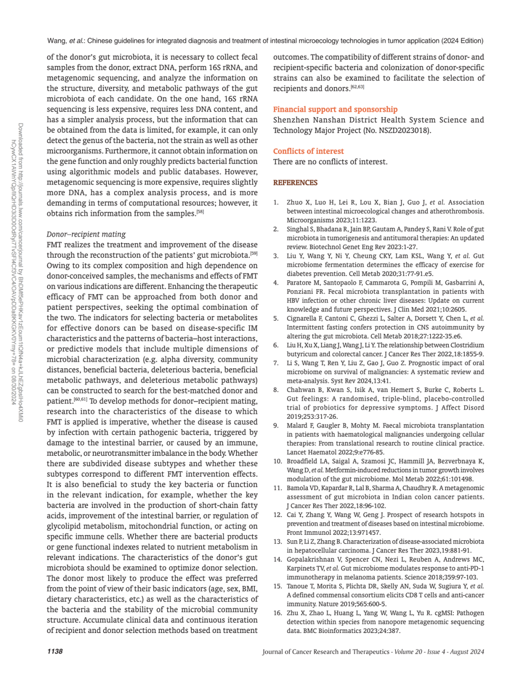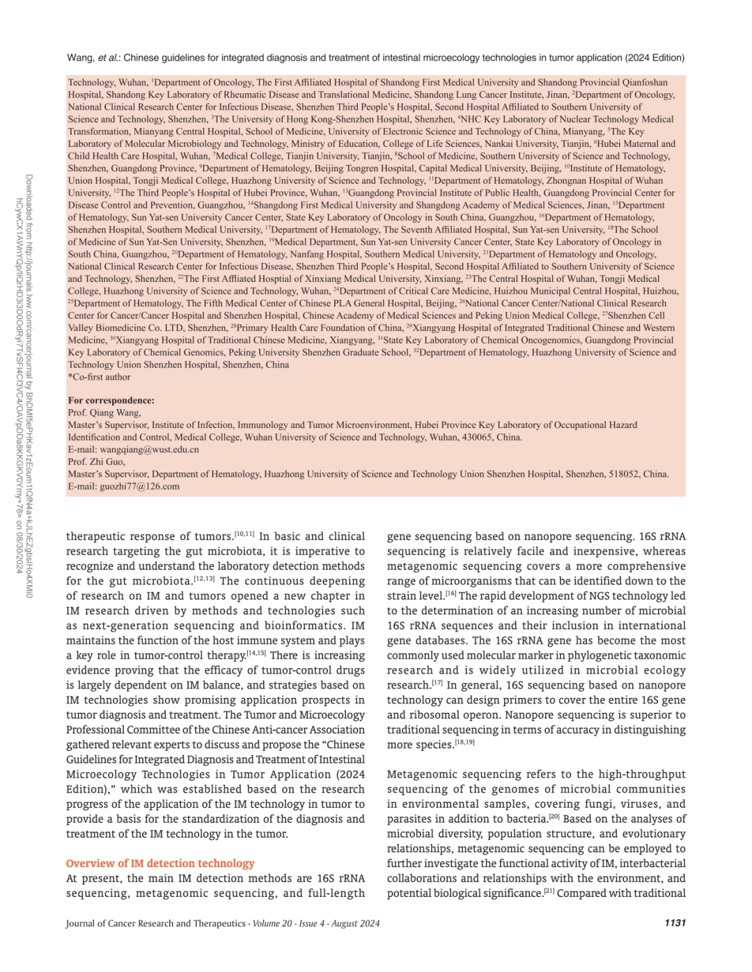 近日,中国抗癌协会肿瘤与微生态专业委员会组织相关专家共同讨论,由华中科技大学协和深圳医院郭智主任和武汉科技大学医学部王强教授牵头制定《中国肿瘤应用肠道微生态技术综合诊疗指南(2024年版)》,我司董事长史渊源教授参与该指南制定,该指南根据肠道微生态技术在肿瘤中应用的研究进展而制定,为肠道微生态技术在瘤体内的诊断和治疗标准化提供依据。