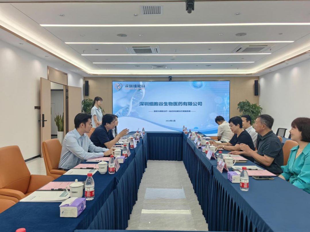 近日,青岛滨海学院副校长杜培革、青岛市立医院肿瘤科主任医师袁胜利、青岛琛蓝健康产业集团董事长邹圣灿一行莅临深圳细胞谷交流访问。我司董事长史渊源、副总经理唐晓萌、董事长助理魏政、市场部部长孙睿、高级研发科学家付宇辰、研发科学家杨轶晴热情接待。
