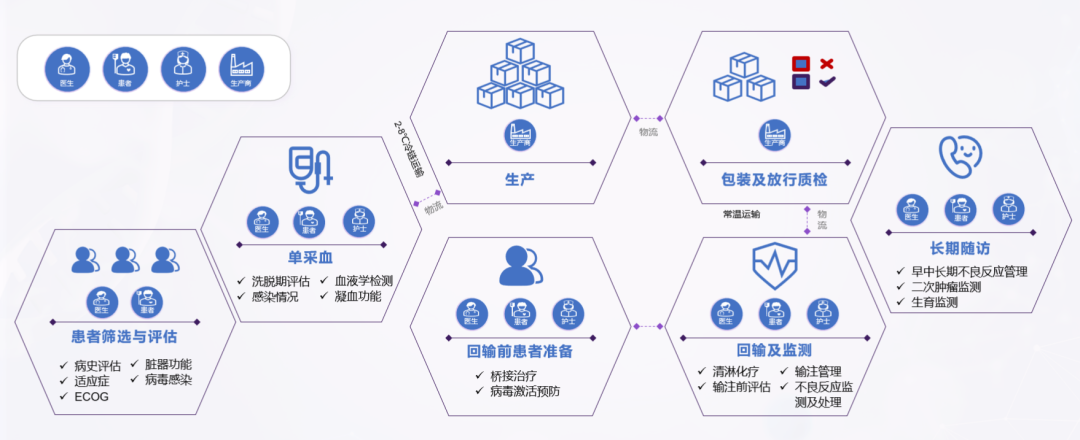截至2021年4月16日,全球共有2073种在研细胞治疗药物,其中CAR-T疗法达到1164种,占据主导地位,年增幅达到35%[1]。CAR-T细胞治疗是个体化的治疗模式,不同研究机构之间的生产制备工艺和平台以及从患者身上采集的细胞存在很大差异,突出了最终CAR-T规范化治疗的必要性。CAR-T治疗已逐步改变了淋巴瘤的治疗格局[2],本文以淋巴瘤为例,对CAR-T在临床治疗阶段的全流程展开介绍。