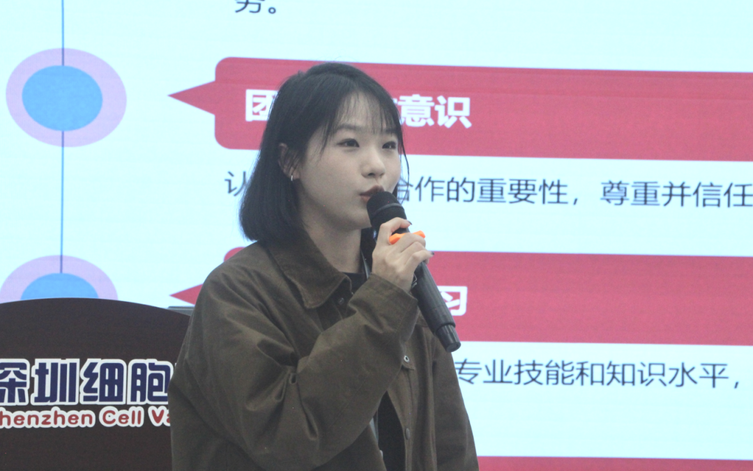 刘冬书记为同学们开展思政第一课,以深入浅出的方式,结合我司的成长历程,为学子们细致解读细胞与基因治疗这一新兴产业的巨大潜力。刘冬书记对深职大首批入职细胞谷的实习生的成长及表现、对深圳细胞谷一对一的带教机制、理论与实践相结合的培训体系表示高度赞许,并鼓励学生们积极追求个人理想,为行业的进步贡献自己的力量,并表示食药学院将持续推动校企合作育人,搭建好学生与企业的桥梁,助力学生高质量就业、助企业吸纳优秀人才,为细胞与基因治疗行业培养技术人才。
