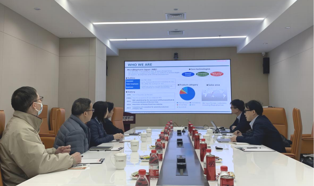1月26日下午,MicroBiopharm Japan(日本微生物制药株式会社)销售企划开发组博士Dr.Machida、Main Life(万联行有限公司)业务拓展经理Mr.Wang莅临深圳细胞谷交流访问,董事长史渊源、综合办公室主任栾知时、质量管理部副部长李荣友、生产部副部长李华秀热情接待,并就未来中日生物医药的发展方向及双方战略合作版块展开座谈交流。