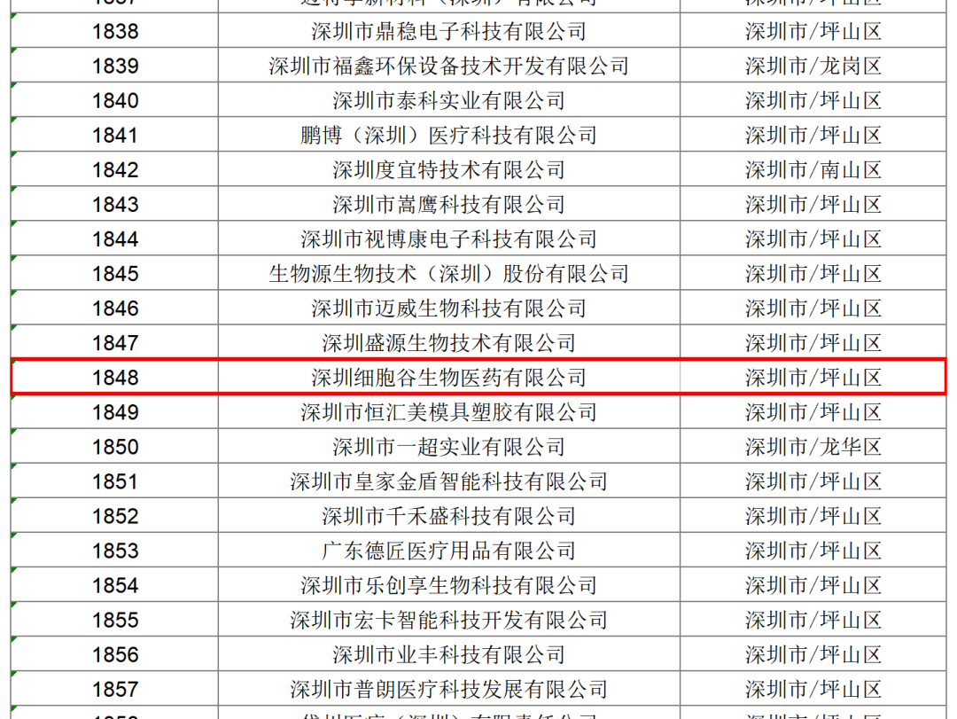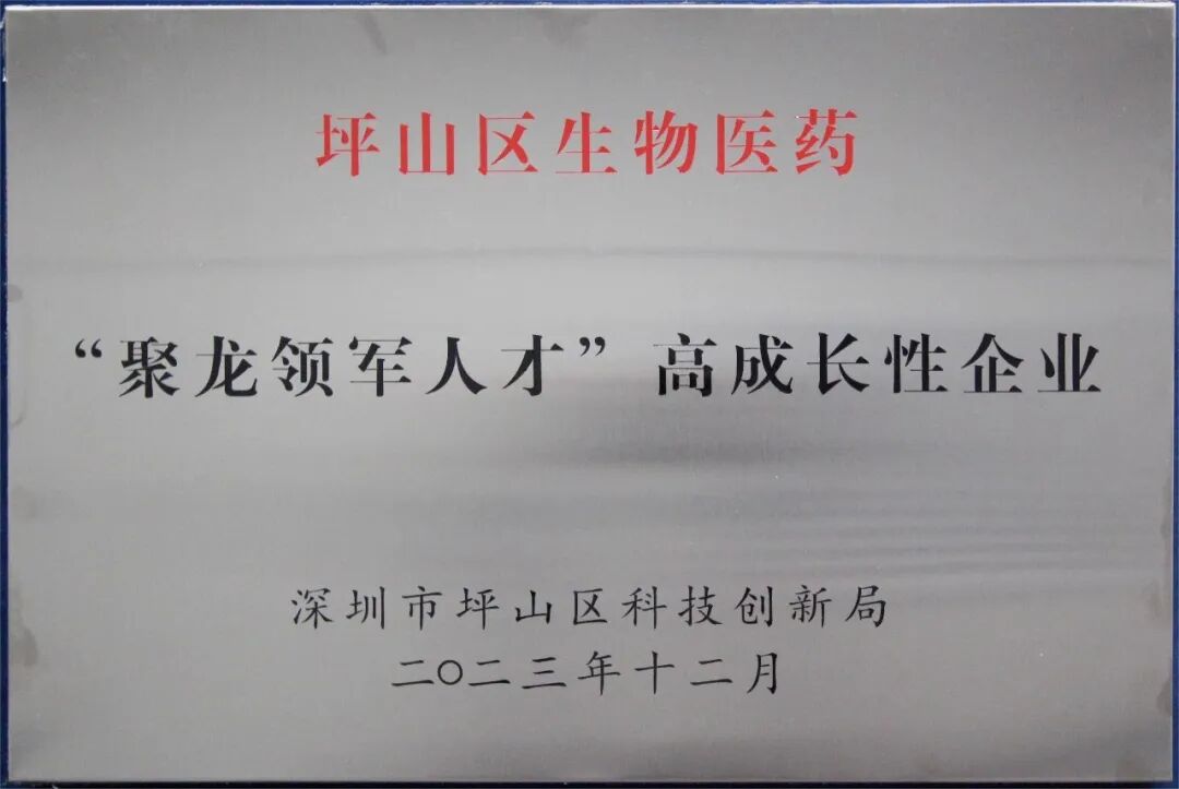深圳细胞谷获批坪山区生物医药领域2023年度“聚龙领军人才”(D类)高成长性企业
