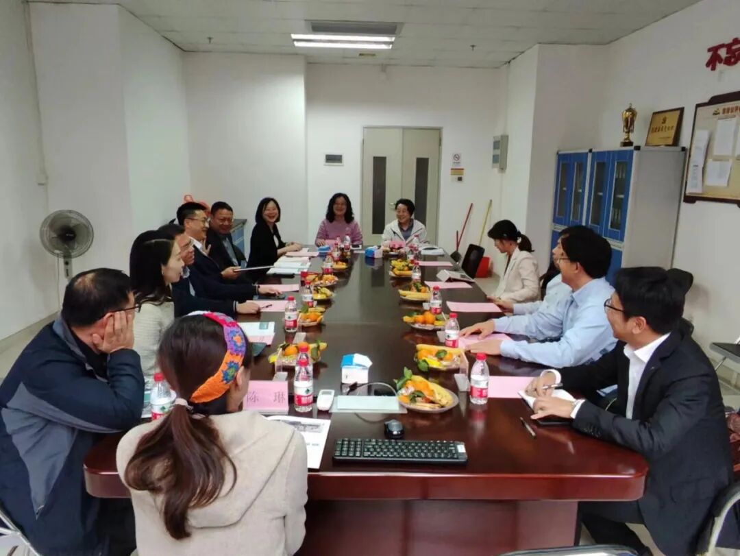 当天下午,由深圳细胞谷王建勋教授带领的团队一行赴广州医科大学-中国科学院广州生物医药与健康研究院联合生命科学学院(以下简称“广医联合生科院”)进行交流访问,广医联合生科院党总支书记方少元、党总支副书记陈向宜、副院长戴建威、副院长张笑人、副院长兼任生物化学与分子生物学教研室主任龚青、生物技术系主任欧阳永长、生物技术系副主任苏晓波、综合管理办公室主任谭茵热情招待并展开了座谈交流会,讨论携手共建发展方向。