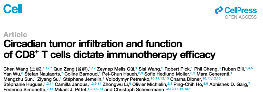 免疫疗法是目前对抗癌症最有效的手段之一,相关研究表明免疫细胞在不同时间段可表现出不同的细胞迁移特性和表型,其抗肿瘤效果会因使用的时间段不同而产生差异。近期《Cell Press》发表的“Circadian tumor infiltration and function of CD8+ T cells dictate immunotherapy efficacy”就揭示了昼夜节律对肿瘤浸润性免疫细胞的细胞数量以及细胞表型的影响,并提出了更优的细胞治疗时间段。